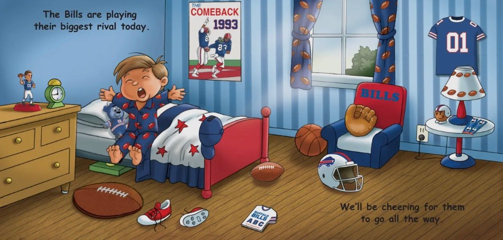 Good Night, Bills follows in the long tradition of ‘good night’ stories loved by children everywhere. The bedtime story takes children through the day of the big game – good morning Buffalo as everyone wakes up in anticipation, good afternoon Bills fans as everyone heads to Highmark Stadium, good evening Bills as the teams take the field and game begins, and of course good night everyone as we say good night to Highmark Stadium, the players and young fans ‘dreaming of their NFL debut.’ Adorable illustrations and accurate drawings of Highmark Stadium and the Bills only found in Good Night, Bills. A touchdown for every young Bills fan.